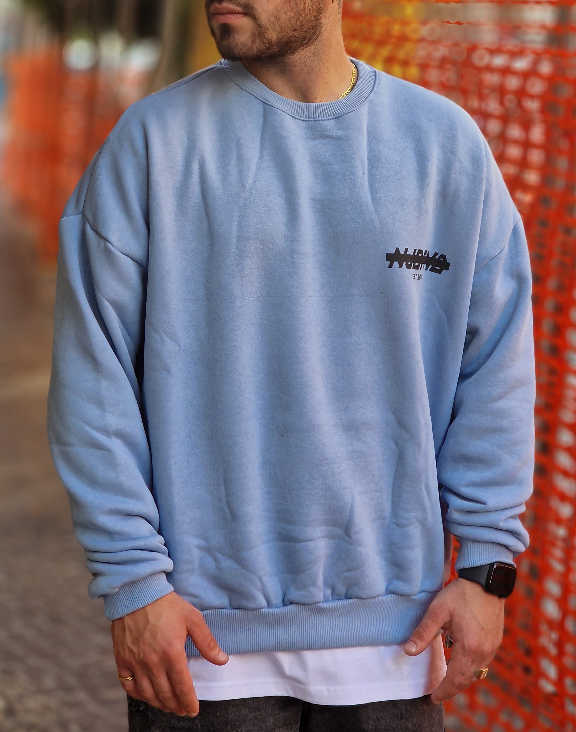 Il modello in foto é alto 1,78 e indossa una M della felpa felpata